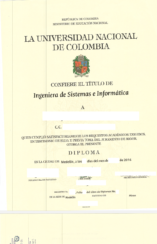 Abschluss Ingenieur, verliehen von der Universidad Nacional de Colombia