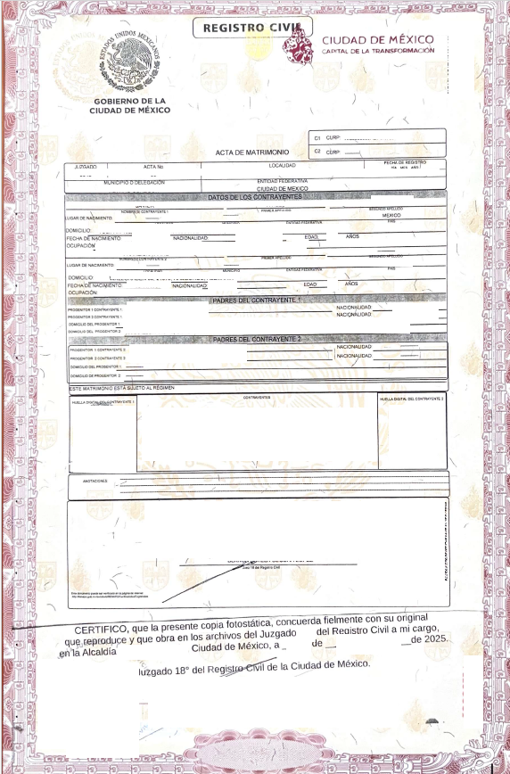 Acta de Matrimonio Ciudad de Mexiko 2025