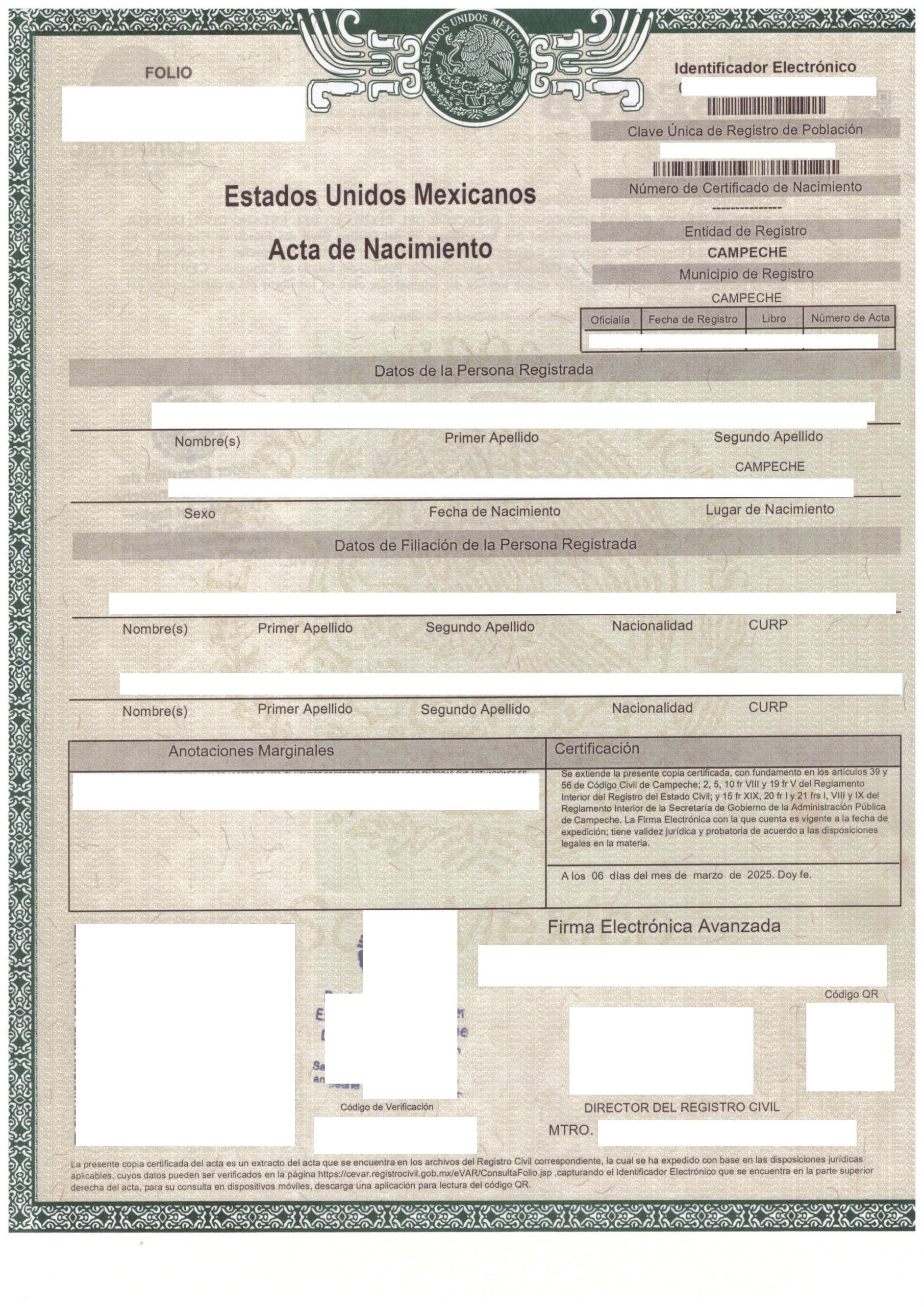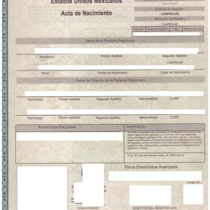 Acta de Nacimiento Mexiko Digital CAMPECHE
