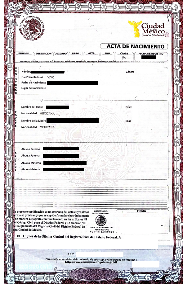 Jeder der mexikanischen Bundesstaaten verfügt über mindestens zwei Formatvorlagen für Geburtsurkunden – die Standardurkunde und die digitale Urkunde mit erweiterter elektronischer Signatur bzw. Überprüfungscode zur Online-Verifizierung. Oft sind es sogar noch mehr.