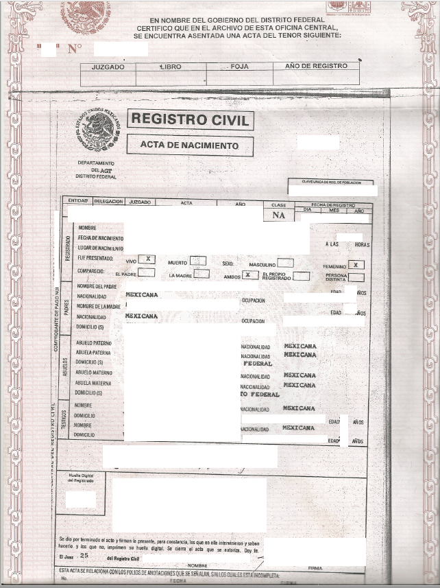 Jeder der mexikanischen Bundesstaaten verfügt über mindestens zwei Formatvorlagen für Geburtsurkunden – die Standardurkunde und die digitale Urkunde mit erweiterter elektronischer Signatur bzw. Überprüfungscode zur Online-Verifizierung. Oft sind es sogar noch mehr.