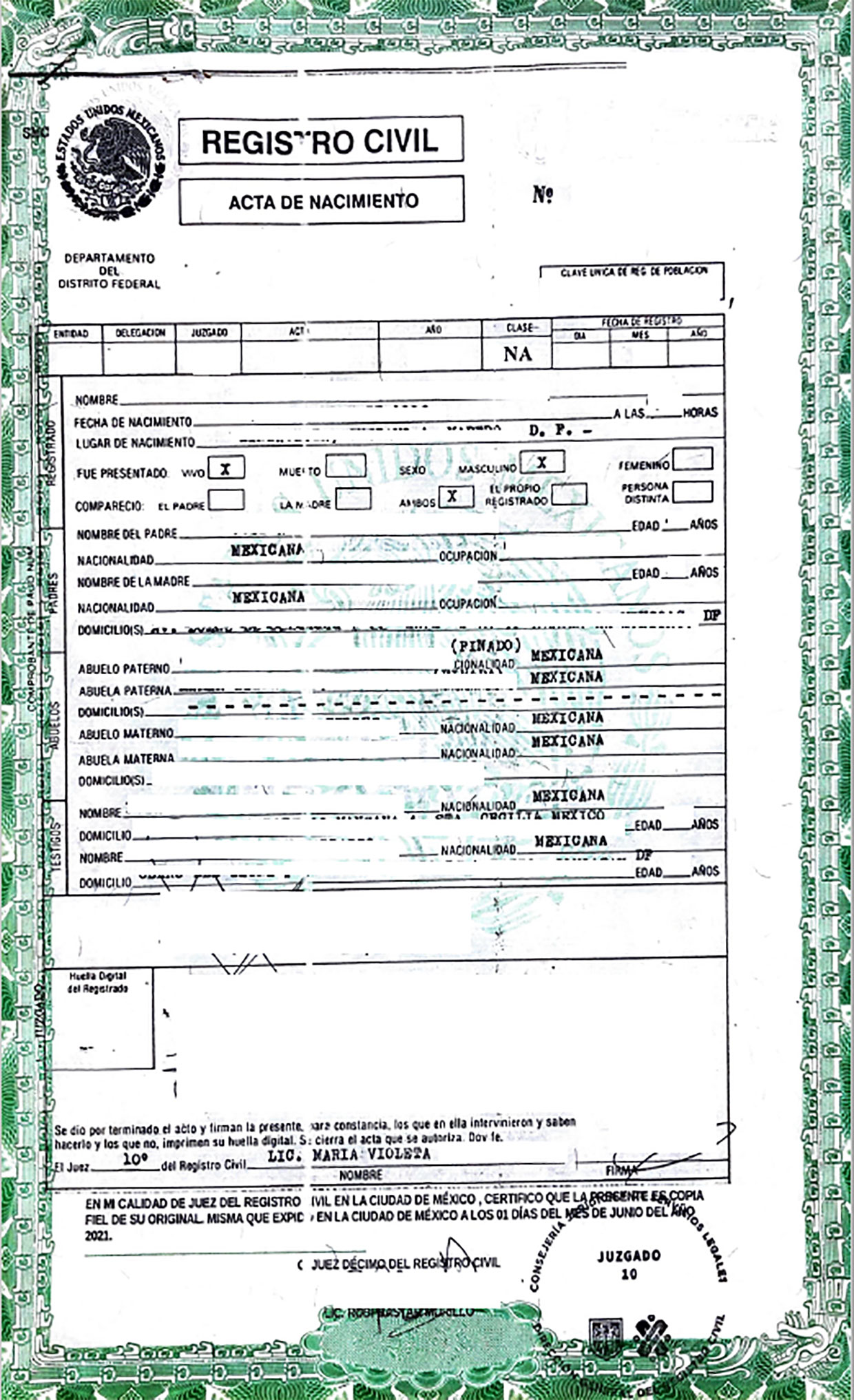 Acta de Nacimiento, Geburtsurkunden
