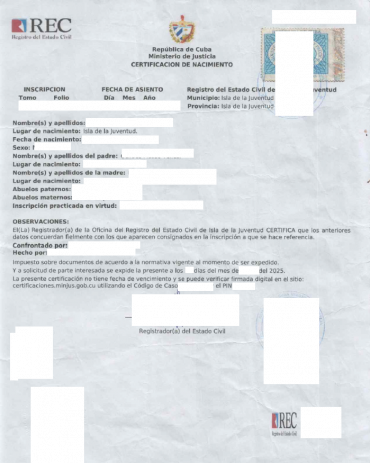 Certificación de matrimonio Cuba Registro del Estado Civil Cárdenas Matanzas