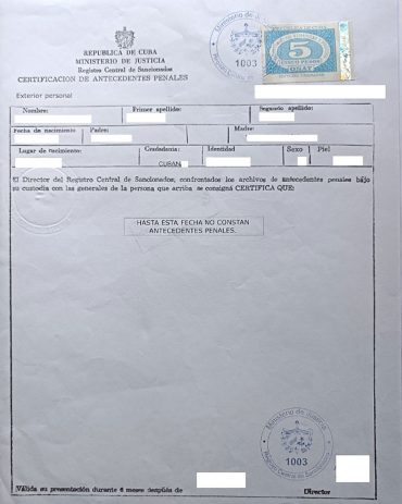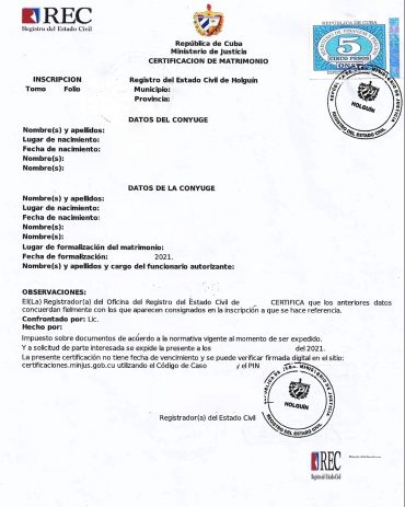 Certificación de matrimonio Cuba Registro del Estado Civil Cárdenas Matanzas