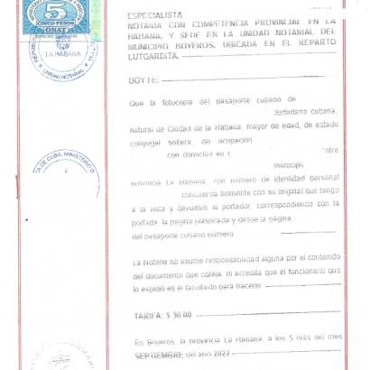 Reisepass Cuba, beglaubigte Kopie „Cotejo“.