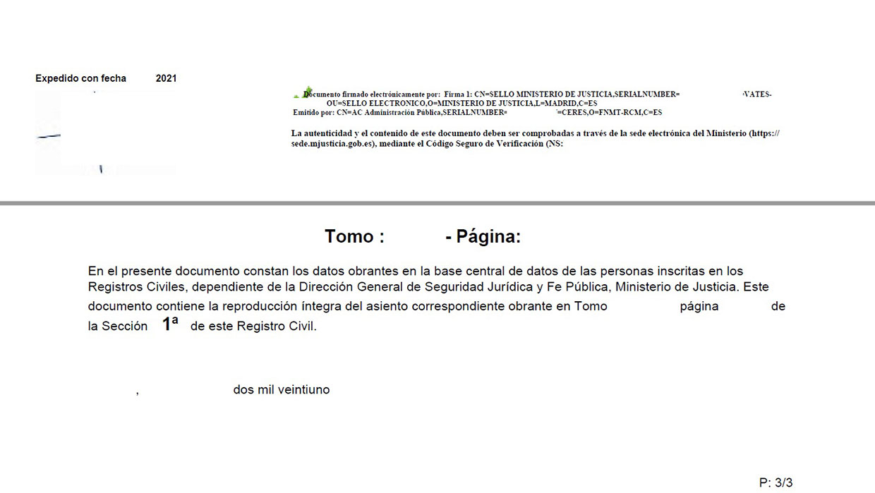 Elektronische Signatur Geburtsurkunde literal Spanien