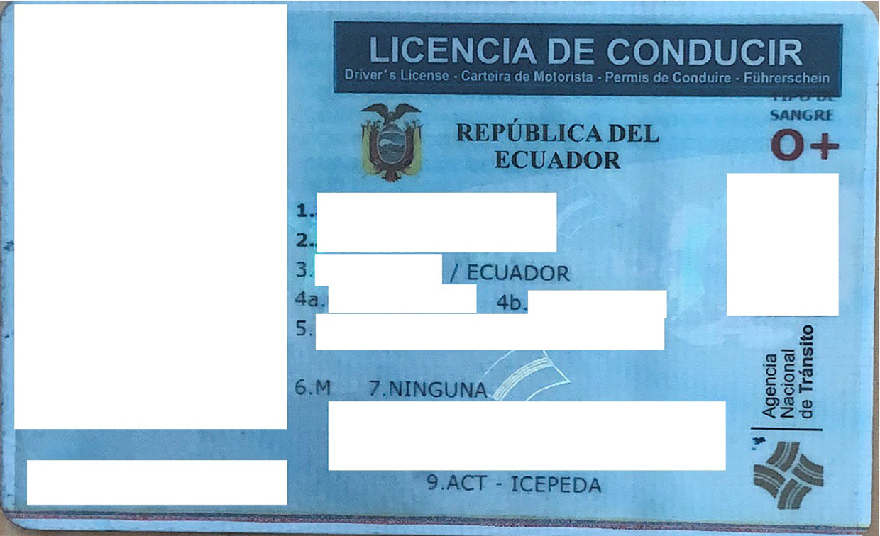 Bei dieser Vorlage für die beglaubigte Übersetzung Spanisch – Deutsch eines Führerscheins aus Ecuador handelt es sich um die Vorlage für eine Licencia para Conducir in Form einer zweiseitig bedruckten Plastik-Karte.
