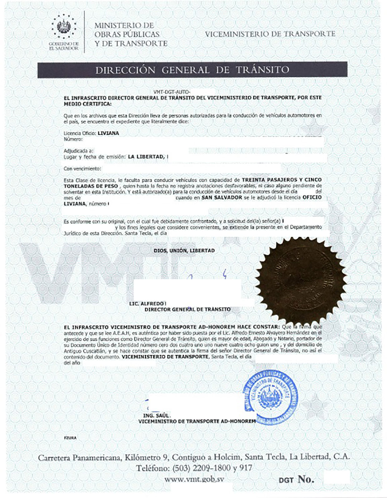 Führerscheinbescheinigung El Salvador Liviana