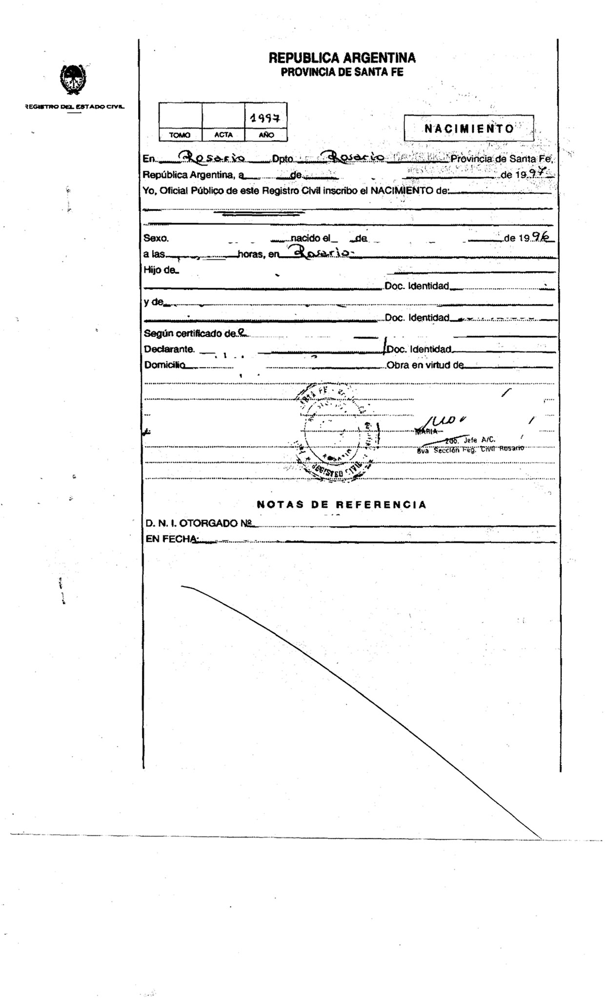 Geburtsurkunde Argentinien Santa Fe Rosario 1986/87