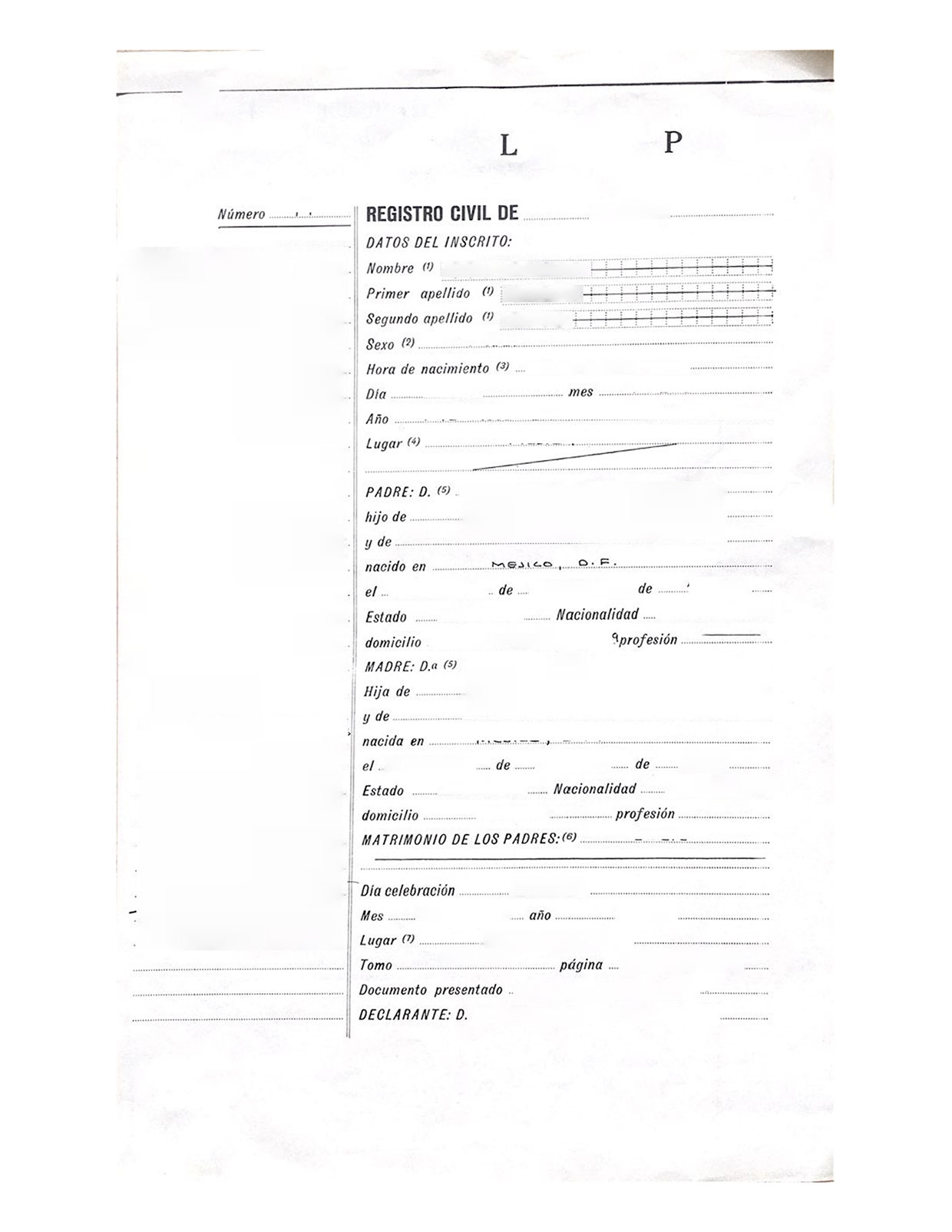Die Geburtsurkunden der spanischen Auslandsvertretungen (Konsulate, Botschaften) haben Standardformate. Diese Vorlage ist eine Vorlage für eine in Ecuador ausgestellte Urkunde des Königreichs von Spanien. Die linke Spalte enthält keine Eintragungen.