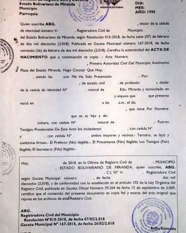 Infoblatt Geburtsurkunden Venezuela