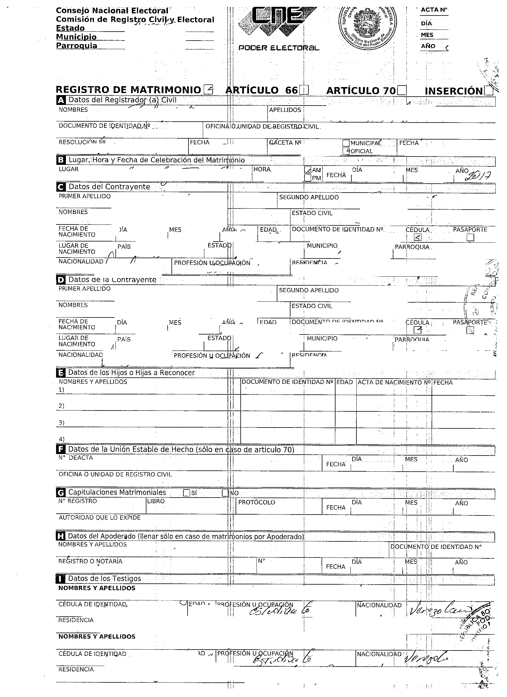 Eheurkunde aus Venezuela, tabellarisch ausgestellt vom nationalen Wahlrat, Bundesstaat Falcón, mit SAREN Legalisationen und Apostille