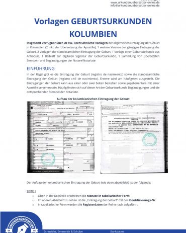 Reisepass Kolumbien, notariell beglaubigte Kopie.
