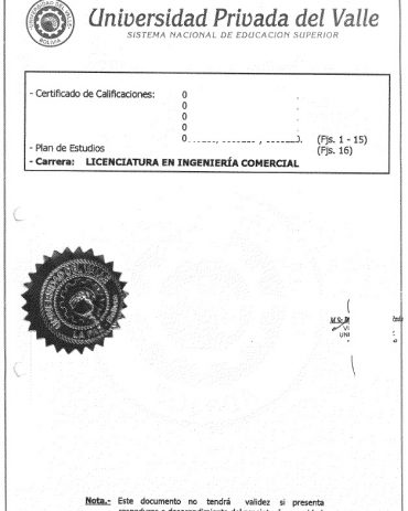 Certificado de cualificaciones Universidad Privada Del Valle Bolivien
