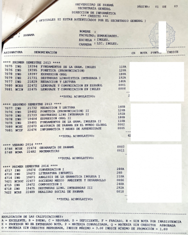Crédito Licenciatura Inglés Universidad de Panamá